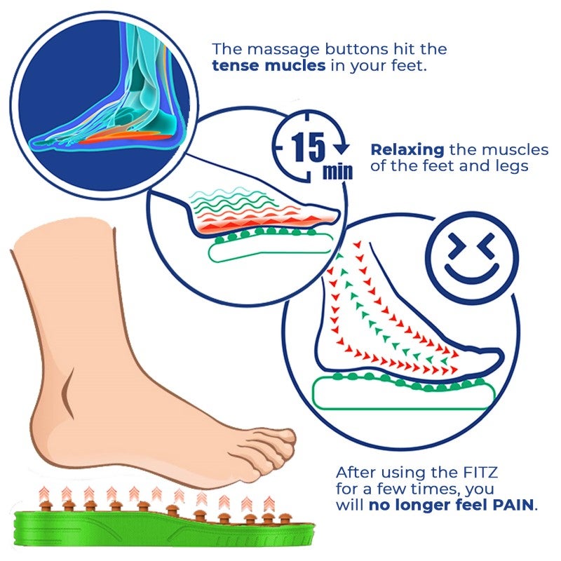 The FITZ targets 82 reflex zones on the feet which correspond to different internal organs. By applying pressure to the reflex zones, it helps unblock tension and stiffness, increasing the distribution of blood and oxygen, and allowing the body to heal itself(1)(7)(10).