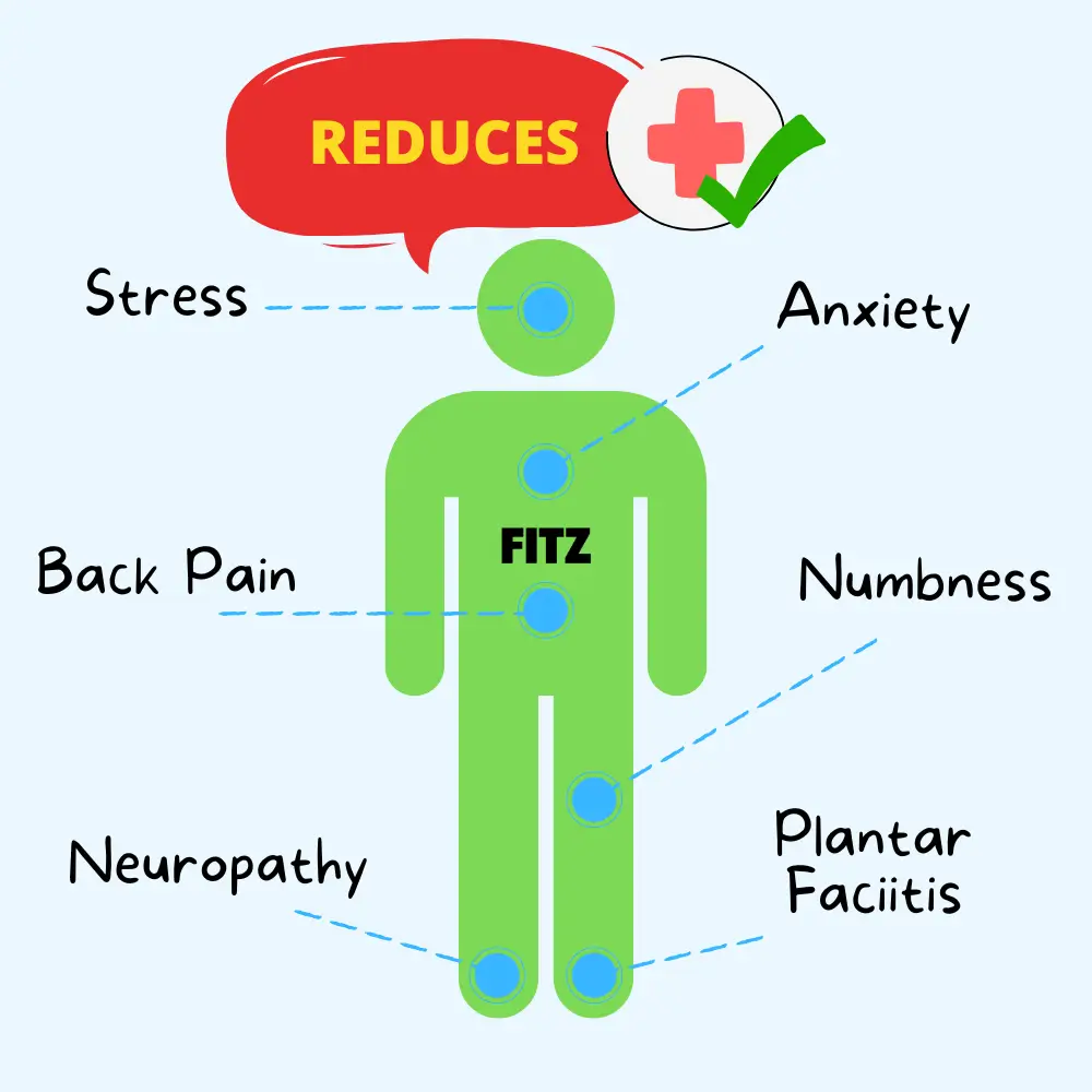 Neuropathy, injury recovery, longevity, foot pain, plantar faciitis, sciatica or just a hard long day of standing up, the FITZ has prooven to help very different conditions in a powerful way.